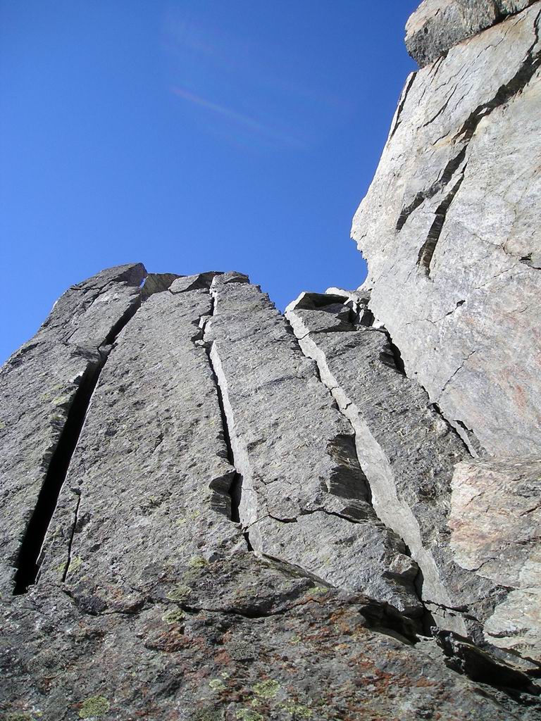 Les passages techniques ne dépassent pas IV mais l'ensemble est coté AD+ ou même D, c'est selon le topo-guide. Avec un peu de feeling on trouve le moyen de ne pratiquement pas perdre le fil de l'arête. |